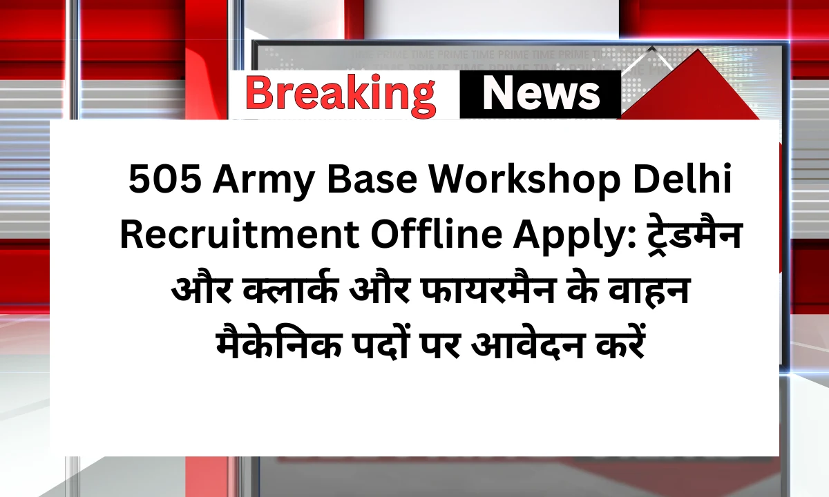 505 Army Base Workshop Delhi Recruitment Offline Apply: ट्रेडमैन और क्लार्क और फायरमैन के वाहन मैकेनिक पदों पर आवेदन करें