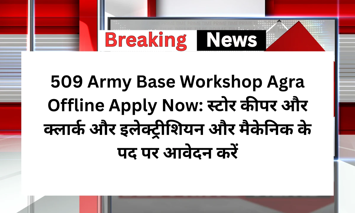 509 Army Base Workshop Agra Offline Apply: आर्मी बेस वर्कशॉप आगरा के द्वारा ऑफिशियल तौर पर स्टोर कीपर और क्लार्क और इलेक्ट्रीशियन और मैकेनिक के 15 पदों पर नोटिफिकेशन जारी कर दिया गया है और आवेदन करने की शुरुआत 2 अक्टूबर 2025 के ऑफिशियल तौर पर हो चुकी है और आवेदन करने के लिए अंतिम तिथि 24 अक्टूबर 2025 होने वाली है तो आपके पास 22 दिन का समय बचा है आप आवेदन कर सकते हैं।