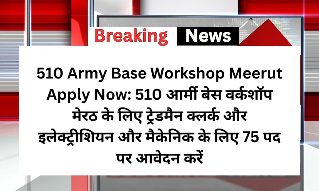 510 Army Base Workshop Meerut ने विभिन्न पदों जैसे Tradesman Mate, Clerk, Electrician, Mechanic, Machinist, और Telecom Operator के लिए