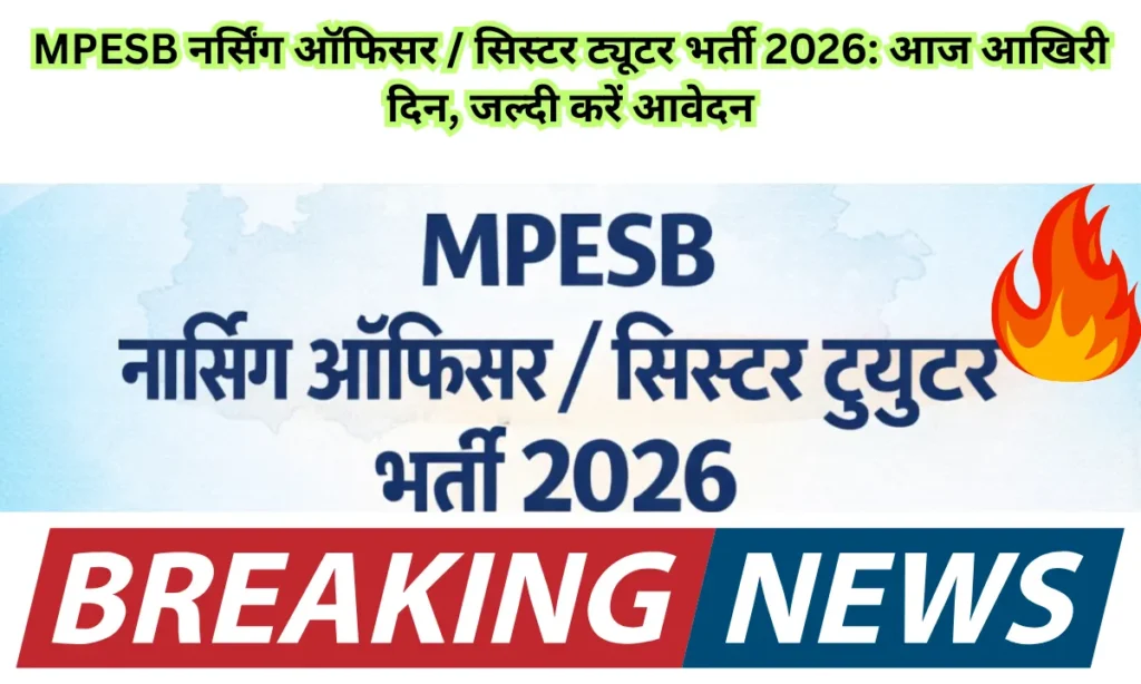 MPESB नर्सिंग ऑफिसर / सिस्टर ट्यूटर भर्ती 2026: आज आखिरी दिन, जल्दी करें आवेदन
