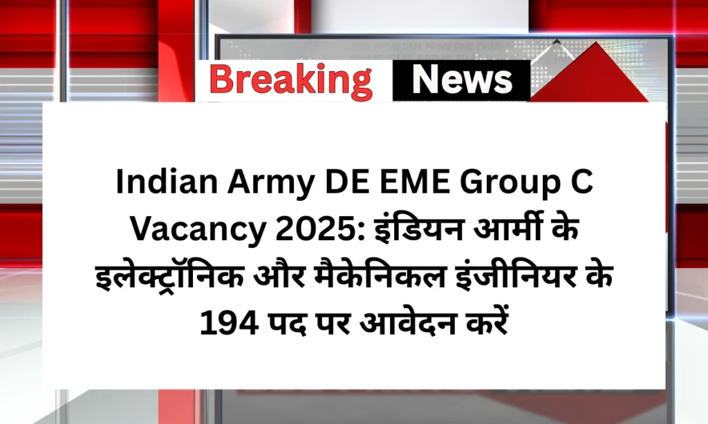 Indian Army DE EME Group C Vacancy 2025: इंडियन आर्मी ने ऑफिशियल तौर पर डायरेक्टर जनरल ऑफ इलेक्ट्रॉनिक एंड मैकेनिकल