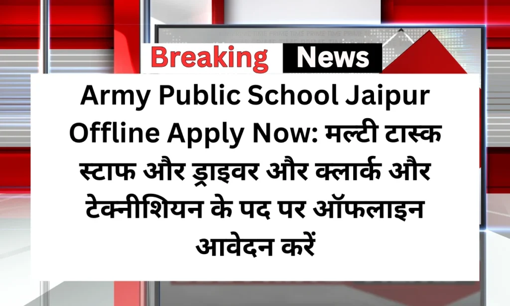 Army Public School Jaipur के द्वारा वर्ष 2025 में कई पदों पर ऑफलाइन आवेदन फॉर्म जारी किए गए हैं। इन